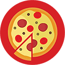 Two section of equal dimension and icon at center.